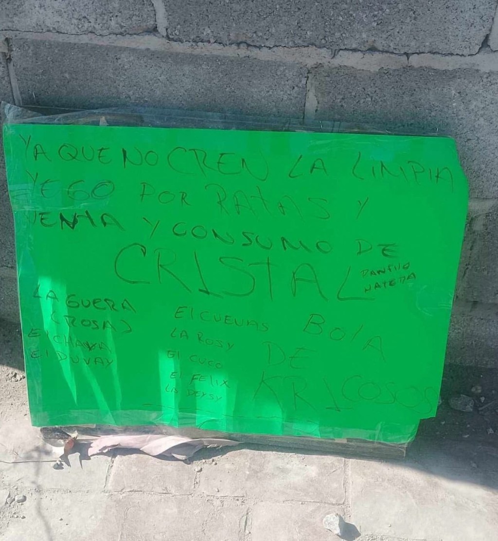 El mensaje estaba en una cartulina verde tirada frente a una casa en las calles Flamingo y 12 de Octubre. Decía que ya empezó “la limpia” contra quienes venden o consumen cristal.