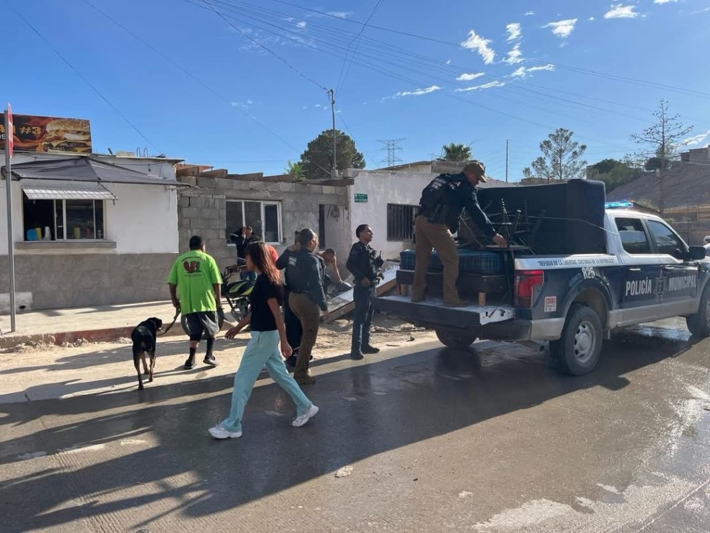 Policías municipales de Juárez entregaron muebles a una familia afectada por las lluvias recientes. La ayuda fue gestionada por agentes de Prevención Social.