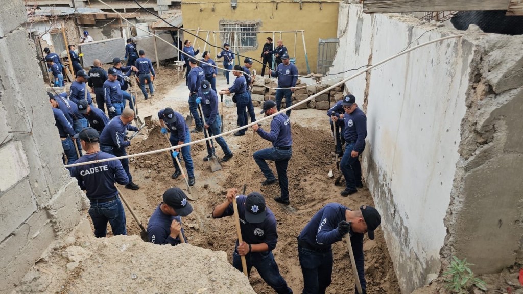 Cincuenta cadetes en formación acudieron este miércoles a la colonia Francisco Sarabia para apoyar a familias que perdieron todas sus pertenencias por las recientes lluvias.