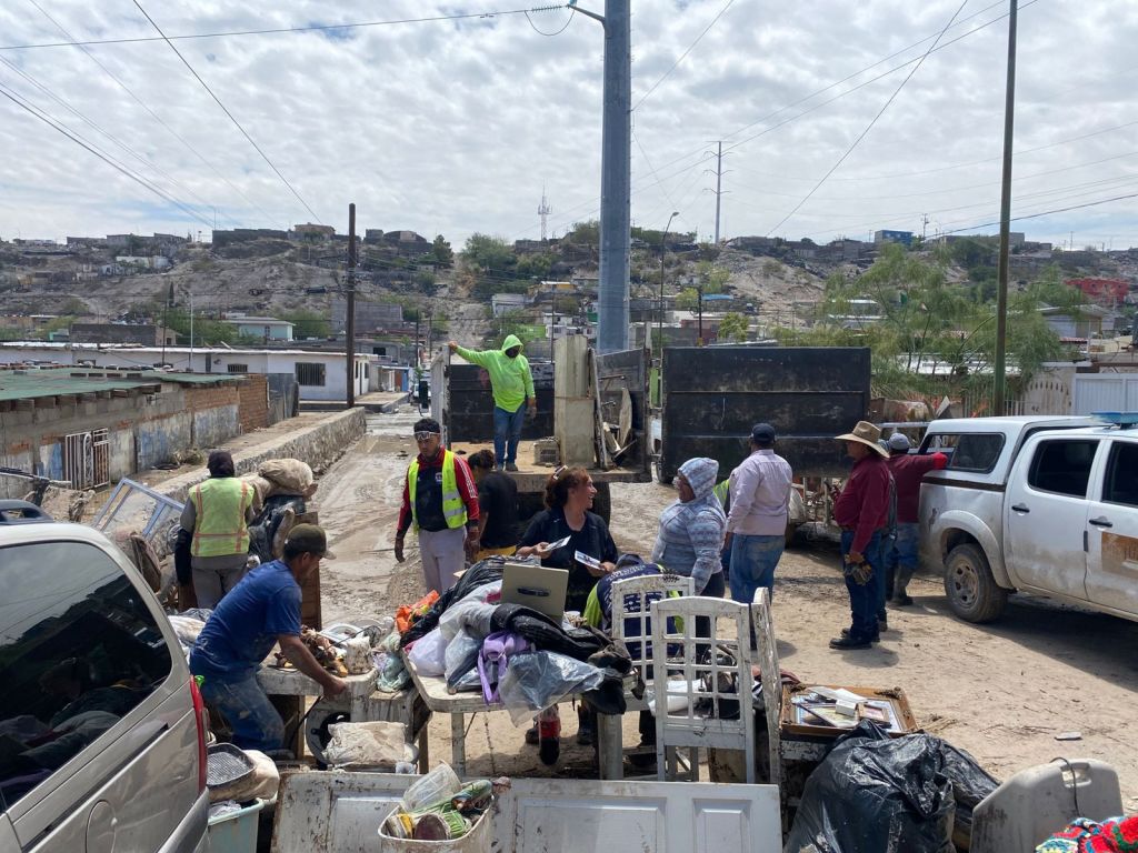 Desde el primer día se atendieron zonas como Fronteriza y Plutarco Elías Calles, donde se retiró lodo, azolve y muebles dañados de unas 200 viviendas afectadas.