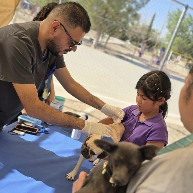 Durante la jornada se aplicaron pipetas antigarrapata gratis a perritos, con apoyo del Condado de El Paso, gracias a las gestiones de la regidora Fernanda Avalos Medina y la Dra. Margarita Peña. También se fumigó el parque contra la garrapata.