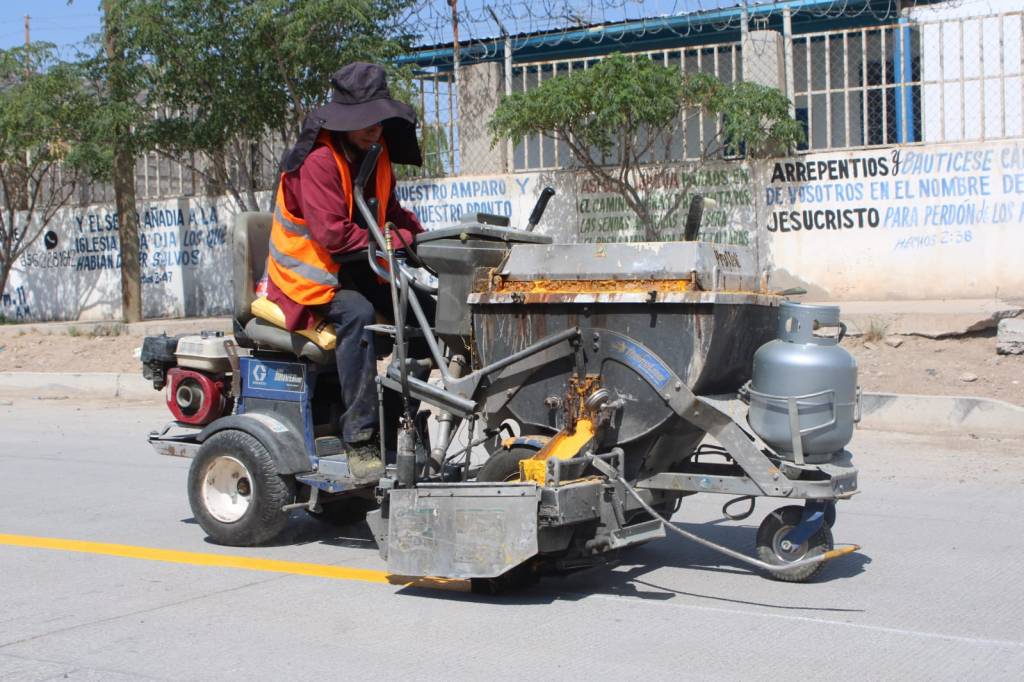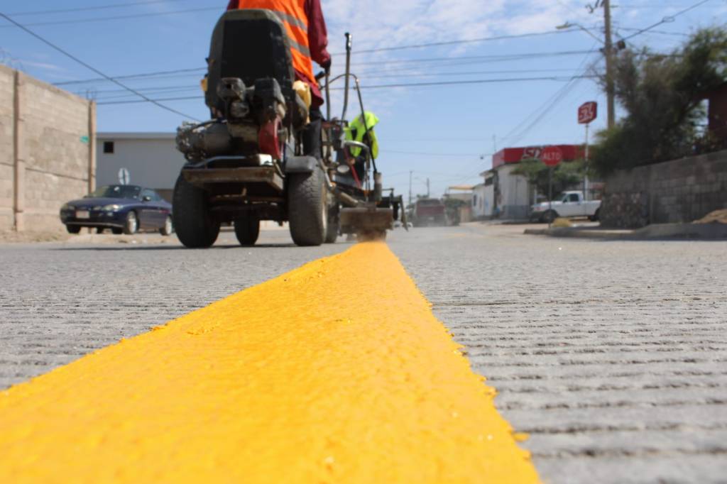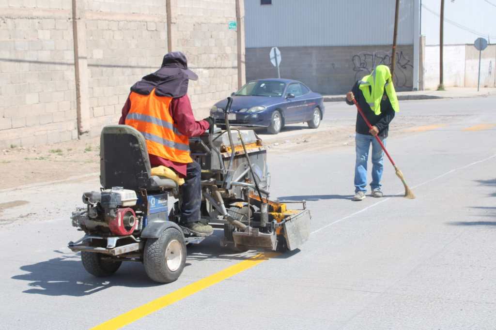 El equipo de Control de Tráfico pintó más de mil 400 metros en la calle Villa Ahumada para mejorar la seguridad y el tránsito vehicular.