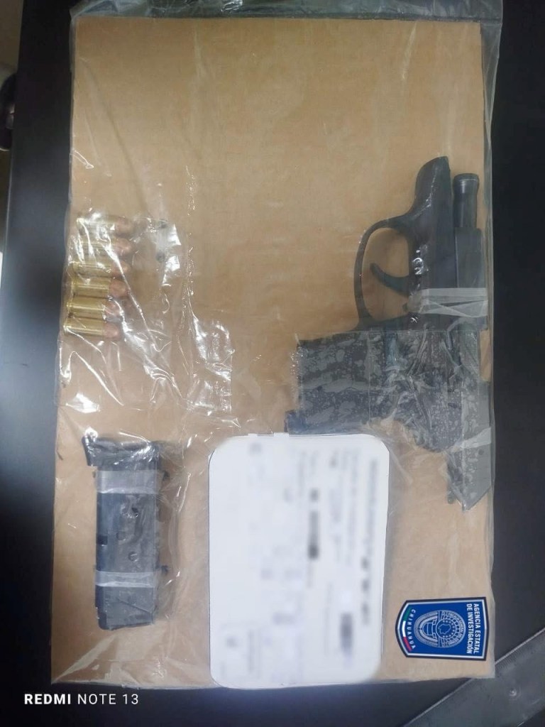 Se trata de Denise Monserrat F. C. y Mario B., quienes traían una pistola calibre .380 a bordo de una Dodge Ram roja modelo 2013.