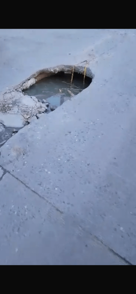 El olor dicen que es insoportable y el pavimento cada vez se deteriora más, por lo que solicitan la ayuda de las autoridades para reparar dicha fuga.