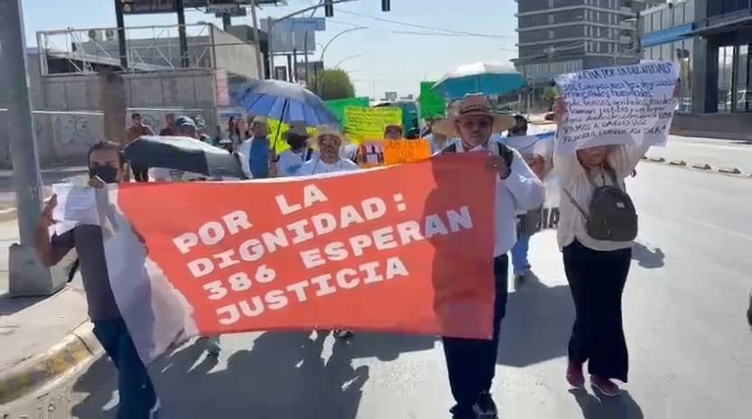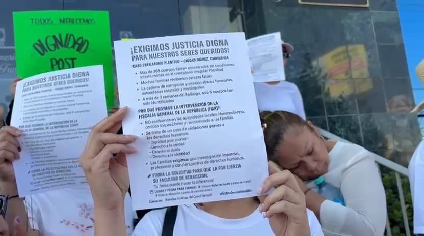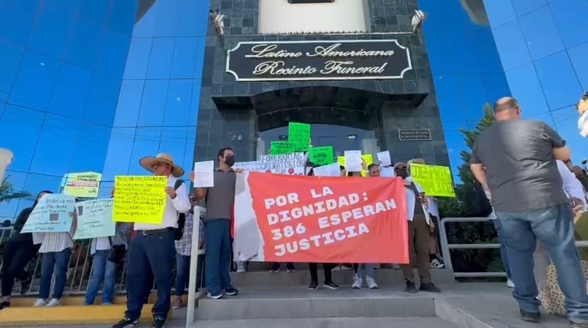 Los manifestantes exigen justicia ante el fraude que vivieron por parte de las funerarias involucradas, así como que se investigue al personal de Comisión Estatal para la Protección de Riesgos Sanitarios.
