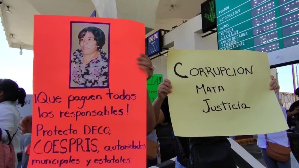 Dejando vía libre a los usuarios que cruzaban hacia los Estados Unidos, la protesta pedía además que el gobierno federal actuara y se hiciera cargo de la investigación, pues el gobierno del estado protege a los funcionarios de la COESPRIS.