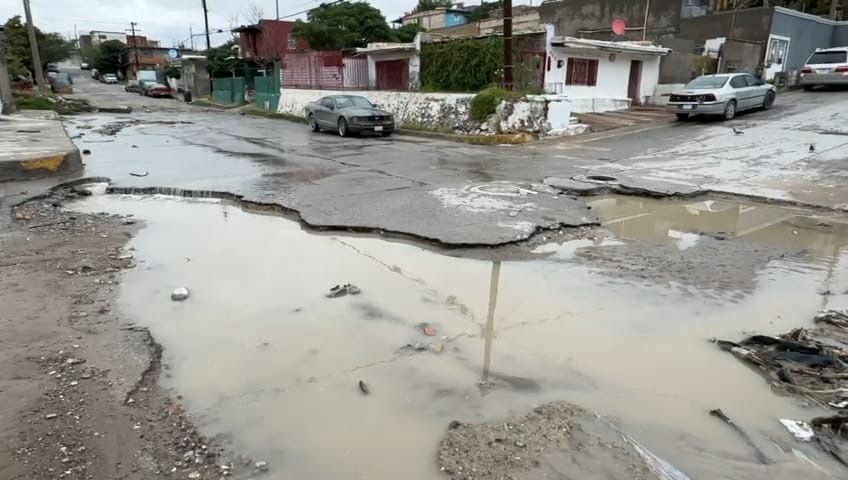 Vecinos de la colonia Niños Héroes reportaron encharcamientos severos en las calles Bario y Begonias tras la lluvia registrada durante la madrugada de hoy.
