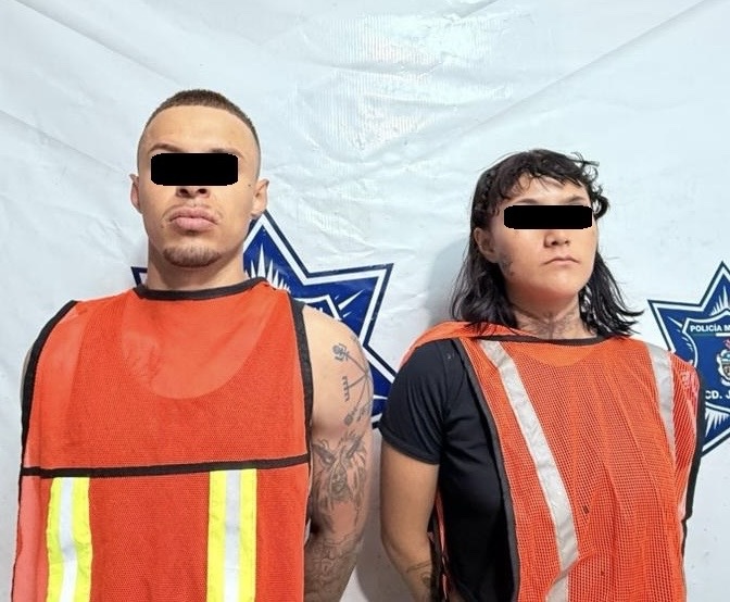 Agentes municipales arrestaron a Bryan E. C., de 27 años, y Verónica V. P., de 18, por posesión de un auto robado y droga.