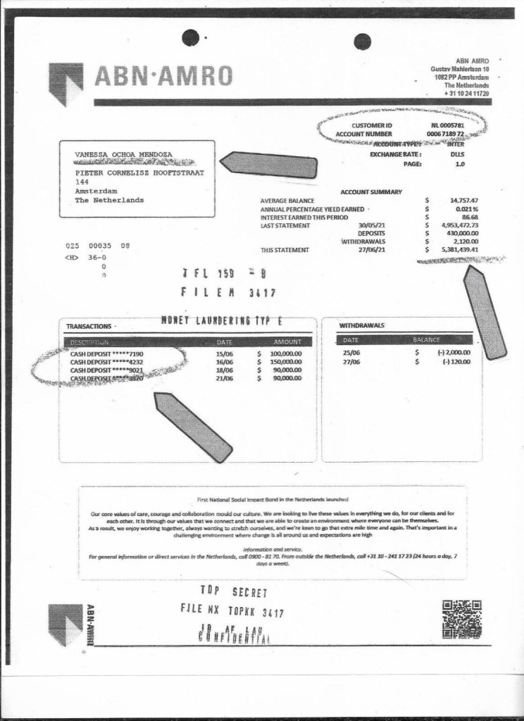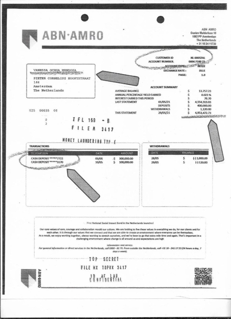 Meses después, las autoridades detectaron una cuenta bancaria en Ámsterdam con más de cinco millones de dólares a nombre de Vanessa Ochoa Mendoza, media hermana del alcalde, lo que reforzó las sospechas.