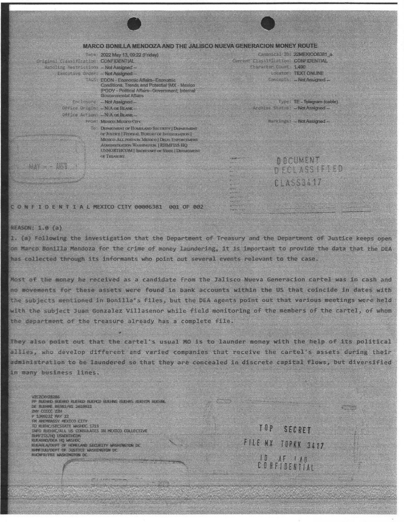 La investigación comenzó en 2021, cuando informantes reportaron que colaboradores cercanos al alcalde fueron vistos con operadores financieros del cártel. Esto llevó al Departamento del Tesoro de EE.UU. a revisar cuentas y transacciones de Bonilla y sus allegados.