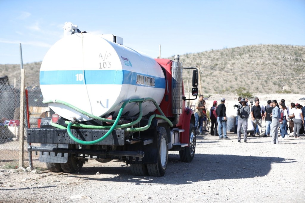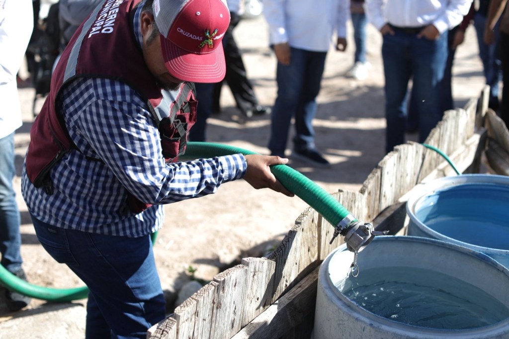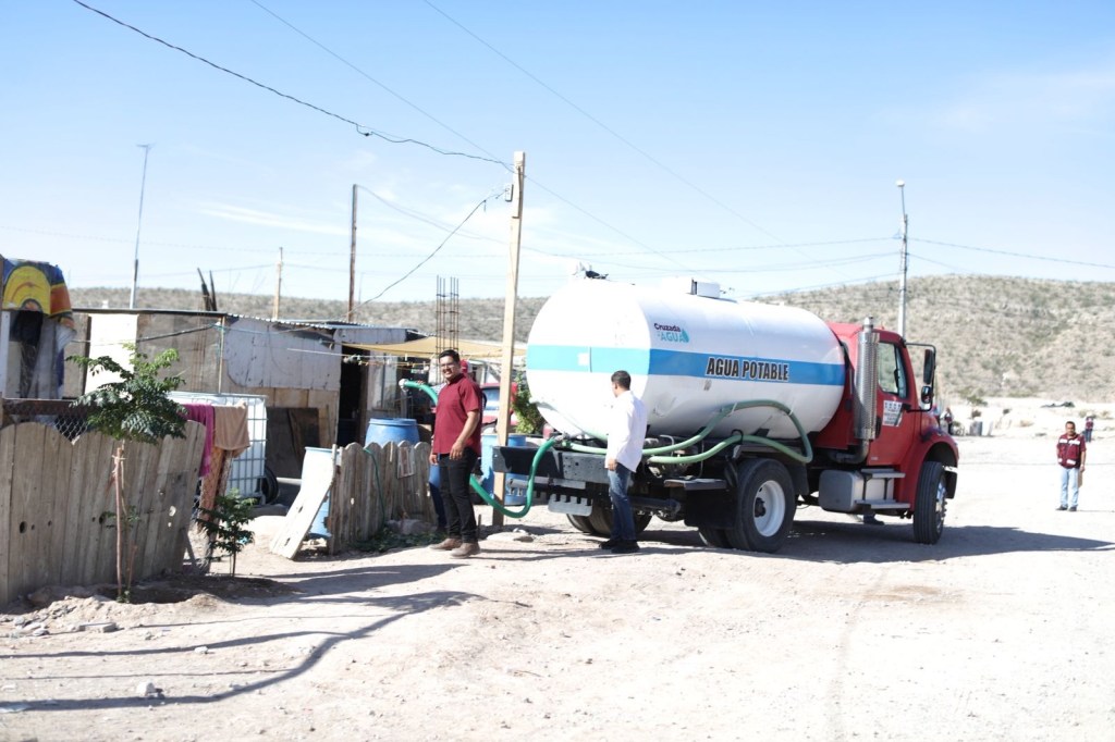 Durante su visita, mencionó que también se entregan tinacos de 250 y 450 litros para ayudar a almacenar agua, especialmente en días de calor intenso como los que se esperan esta semana.