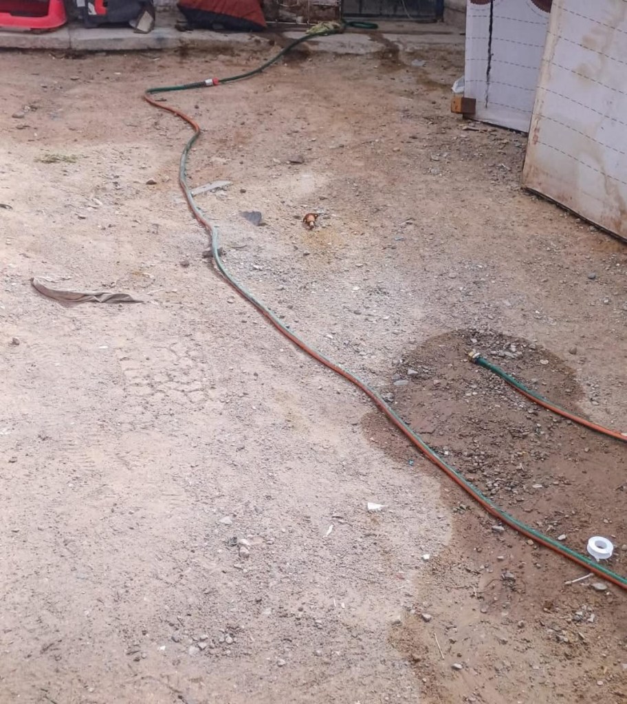En la calle San Sebastián, en la colonia Valle de Santiago, los Guardianes del Agua detectaron una reconexión con manguera. El usuario llenaba bidones para llevar agua a otro punto.