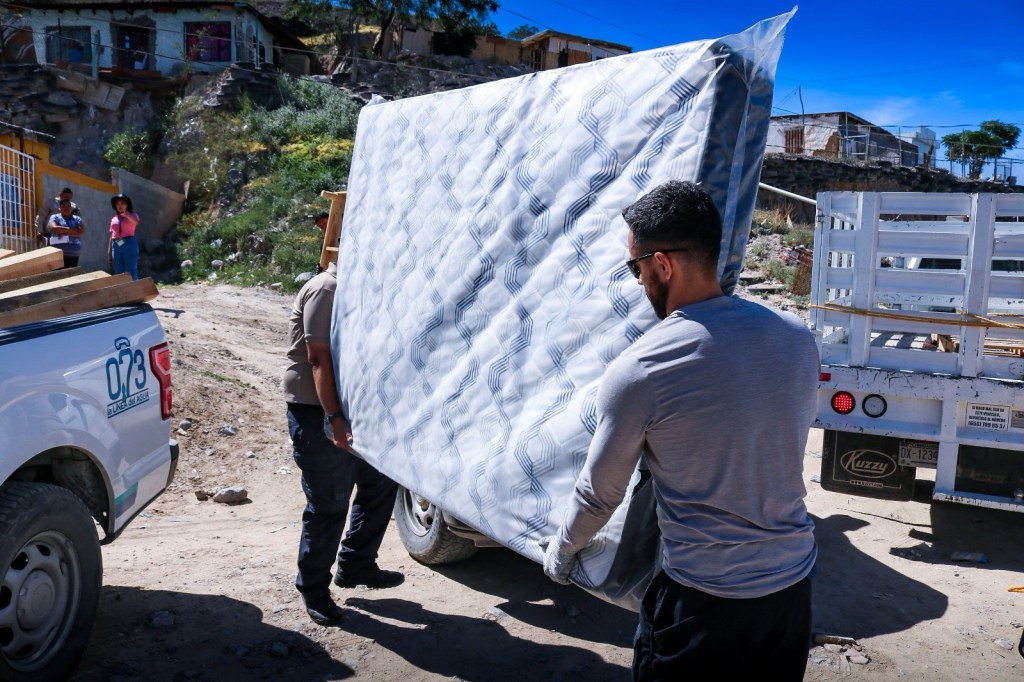 Llevaron láminas, cemento, pintura, colchones, despensas y más a 156 familias. Los apoyos buscan aliviar el gasto que implica reparar sus casas y recuperar lo perdido.