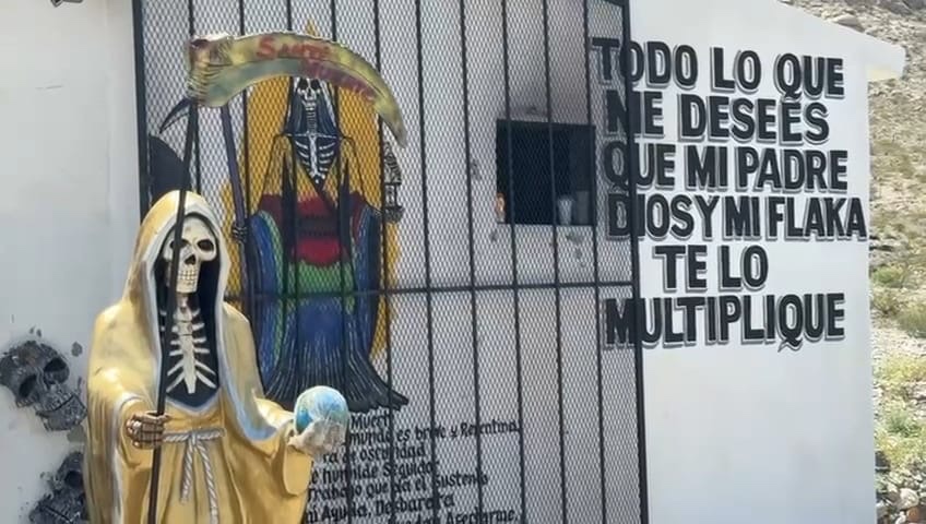 Esta tarde, sujetos desconocidos balearon la fachada de la capilla de la Santa Muerte, ubicada en el periférico Camino Real.