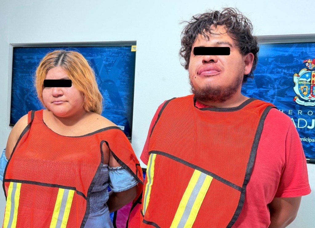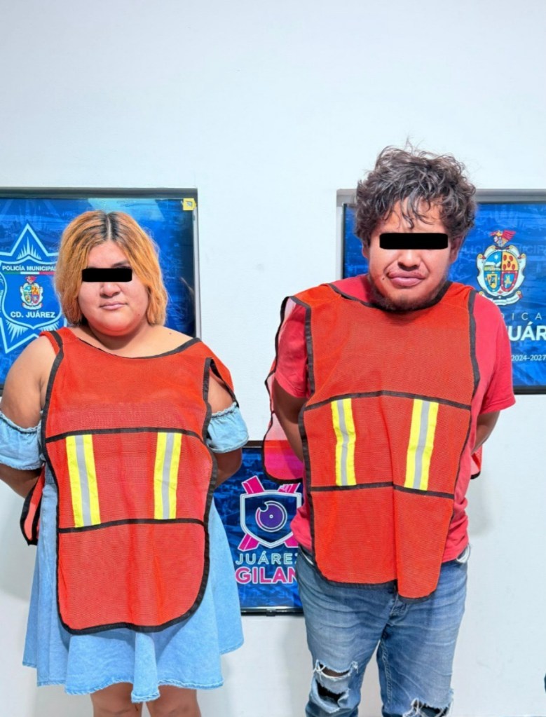 Agentes de la Policía Municipal arrestaron a Cristian Joel G. S., de 30 años, y Angélica E., de 32, acusados de dañar una tienda Oxxo en Tierra Nueva.