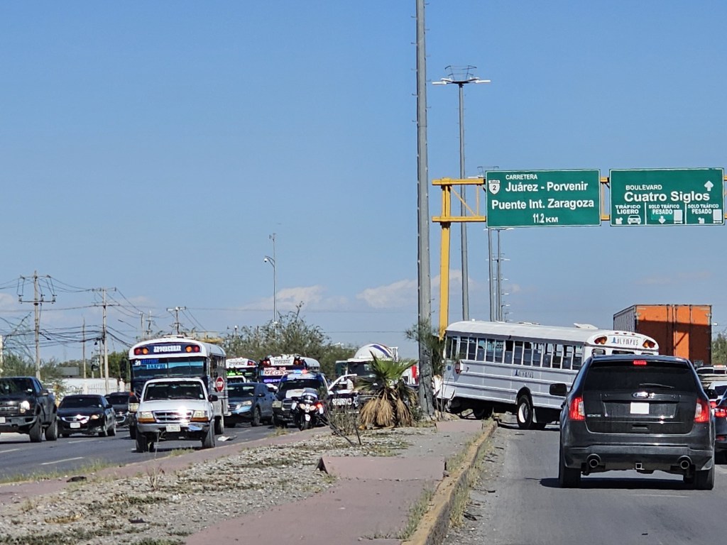 Un camión de personal impactó por alcance a una camioneta Ford blanca en el Libramiento, perdió el control y terminó contra un poste, según testigos.