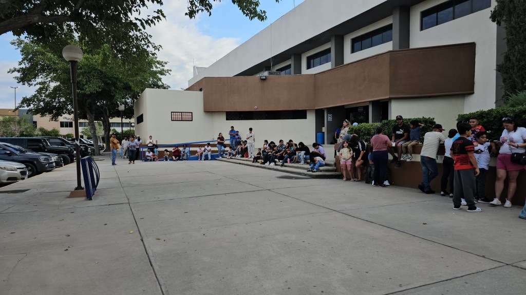 En el gimnasio universitario de la calle Ignacio Mejía, familias completas acudieron al macrocentro de vacunación masiva contra el sarampión, instalado para prevenir nuevos contagios en la ciudad.