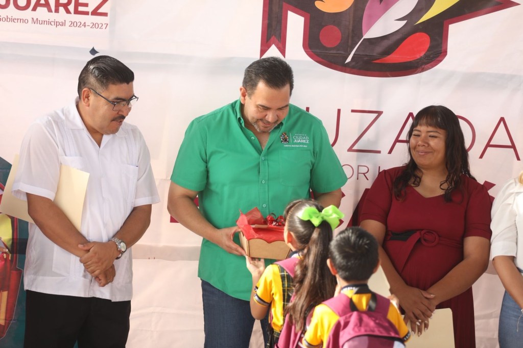 El alcalde Cruz Pérez Cuéllar encabezó la entrega de mochilas y loncheras a estudiantes de la primaria “Rubén Pérez Rasgado”, como parte del programa Cruzada por la Educación.