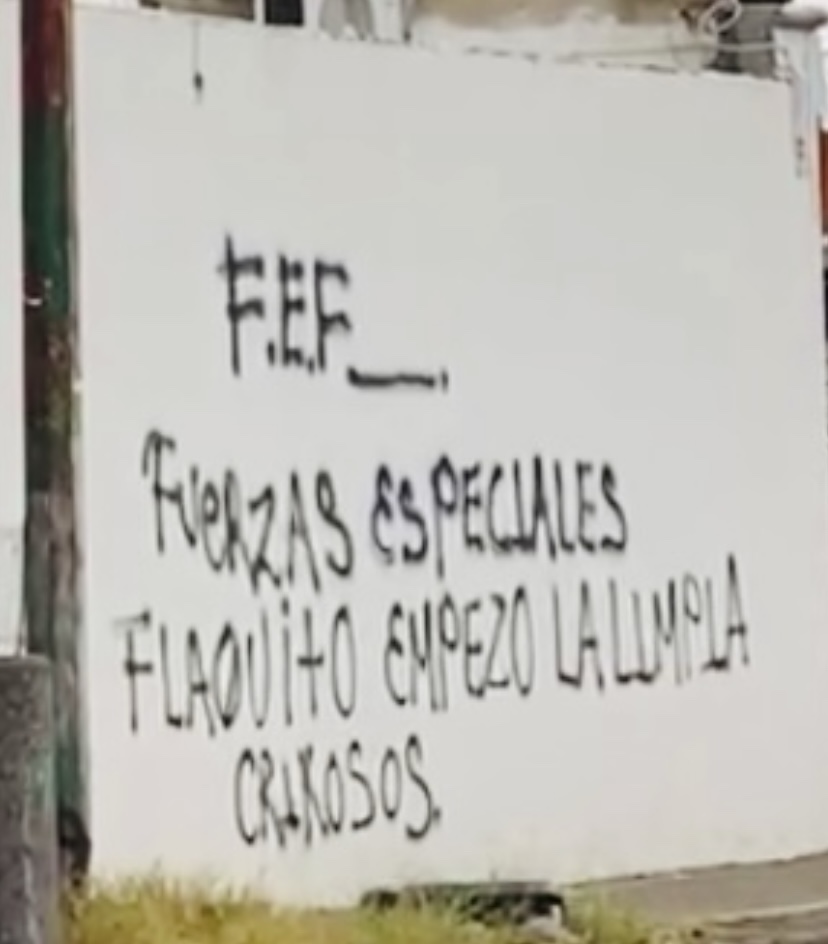 Además quien firmaba era “Fuerzas Especiales Flaquito” seguido de una raya. Autoridades policiacas aseguraron el lugar.