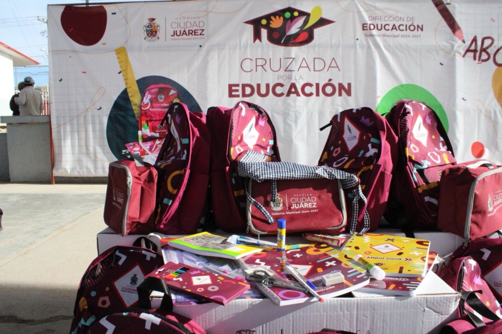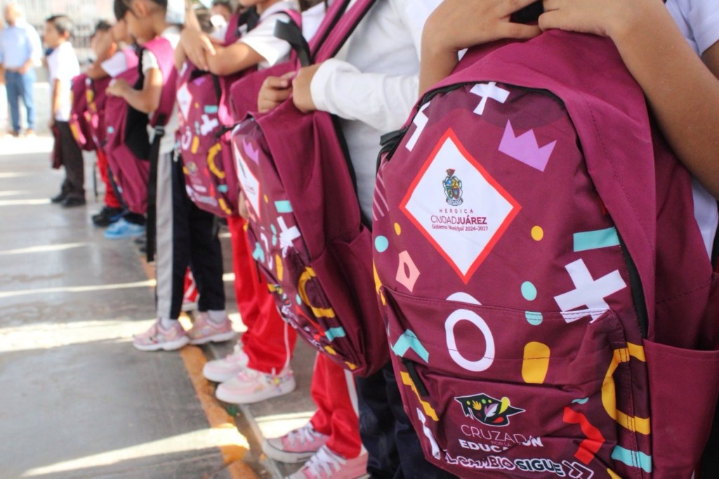 Guillermo Enrique Alvídrez Olivas, titular de Educación, explicó que brigadas municipales recorren planteles de preescolar, primaria, secundaria y CAM para agilizar la entrega. En total se repartirán 130 mil mochilas y 48 mil loncheras.