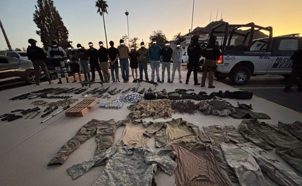 La SSPE, en coordinación con la Guardia Nacional, detuvo a 11 presuntos integrantes de una célula criminal en la colonia Héroes Nacionales de Ojinaga, incautando armas, droga y equipo táctico.