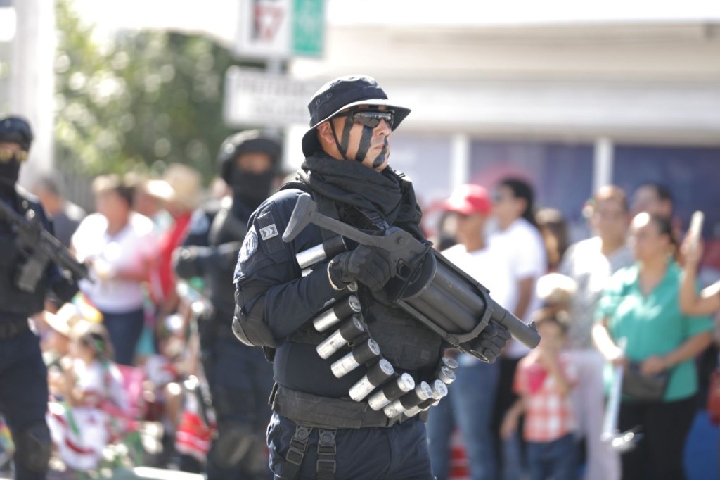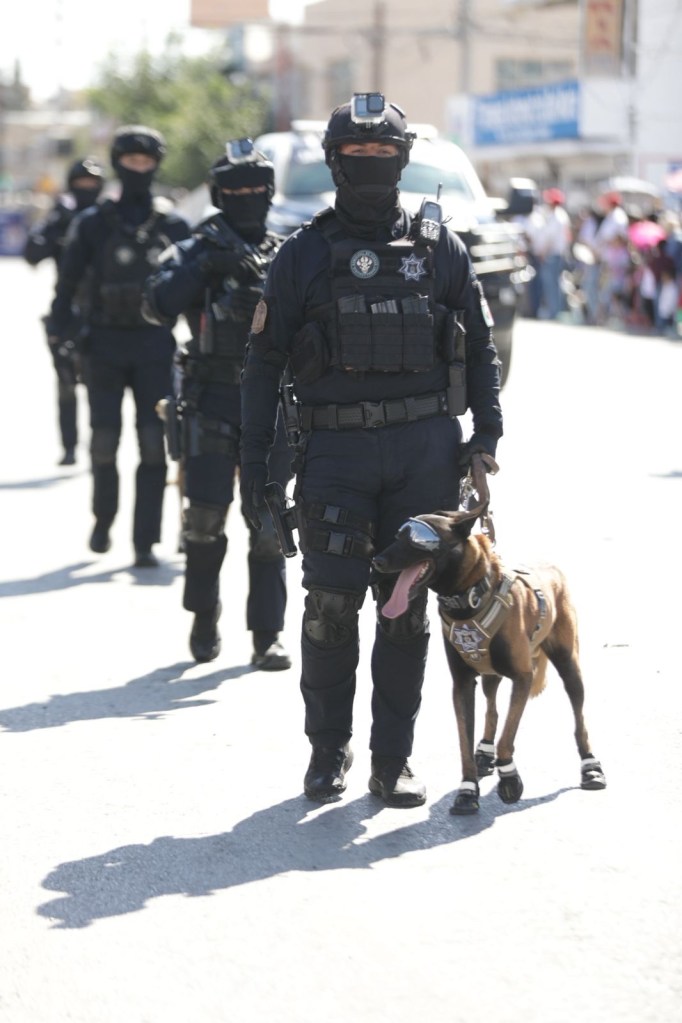 Más de 20 mil asistentes disfrutaron del paso de la Columna Histórica, contingentes de SEDENA, Guardia Nacional, Policía Municipal, Bomberos, escuelas locales y agrupamientos tácticos con tecnología moderna.