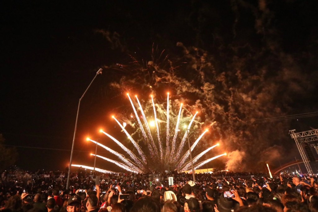 Tras el Grito de Independencia encabezado por Cruz Pérez Cuéllar, miles de familias disfrutaron de un espectáculo de drones y pirotecnia que emocionó a los asistentes.