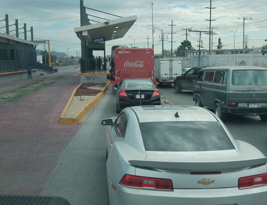 Cada unidad puede transportar hasta 80 personas, por lo que invadir el carril representa un riesgo directo para quienes confían en este servicio diario de transporte.