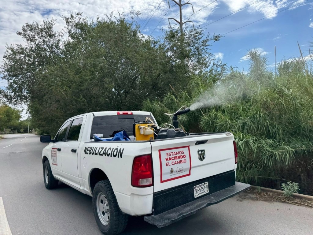 César René Díaz Gutiérrez explicó que el programa busca eliminar moscos que aparecen con la humedad, reforzando trabajos en Riberas del Bravo y Dren 2A, hasta noviembre próximo.