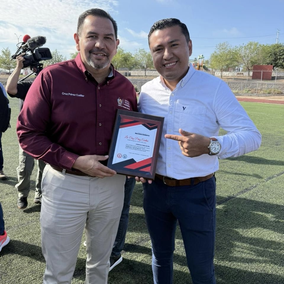 El alcalde de Ciudad Juárez, Cruz Pérez Cuéllar, recibió un reconocimiento por el trabajo que ha impulsado para buscar la pacificación en la frontera.