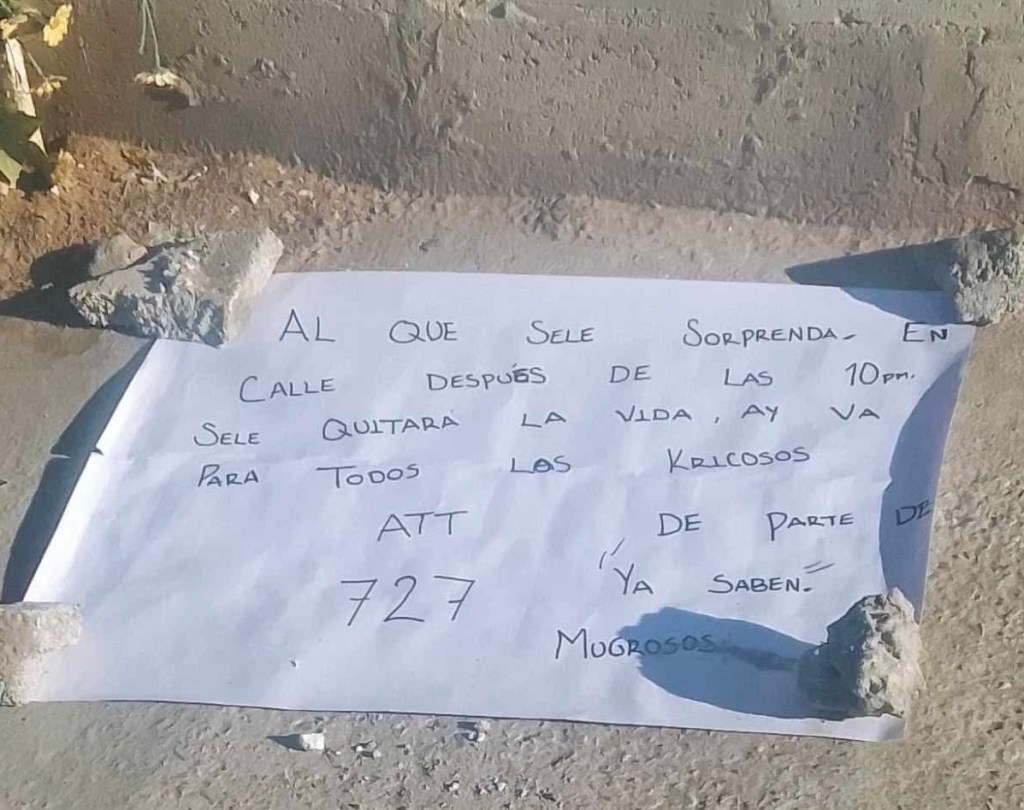 Durante la mañana de este martes, en Ciudad Juárez sujetos desconocidos dejaron una cartulina firmada por un grupo criminal donde amenazan a los consumidores de cristal.