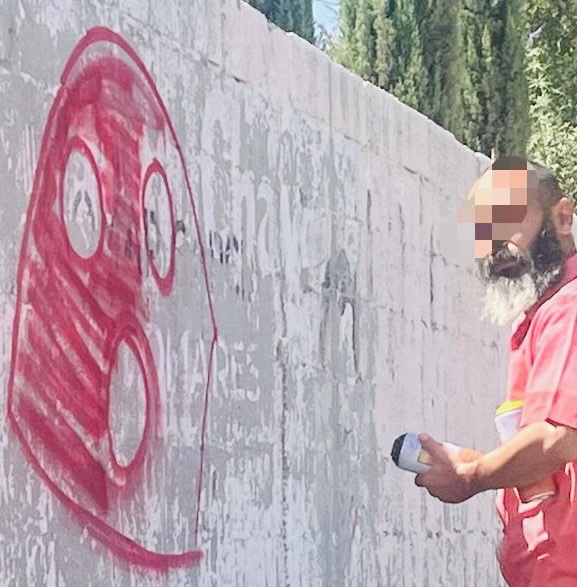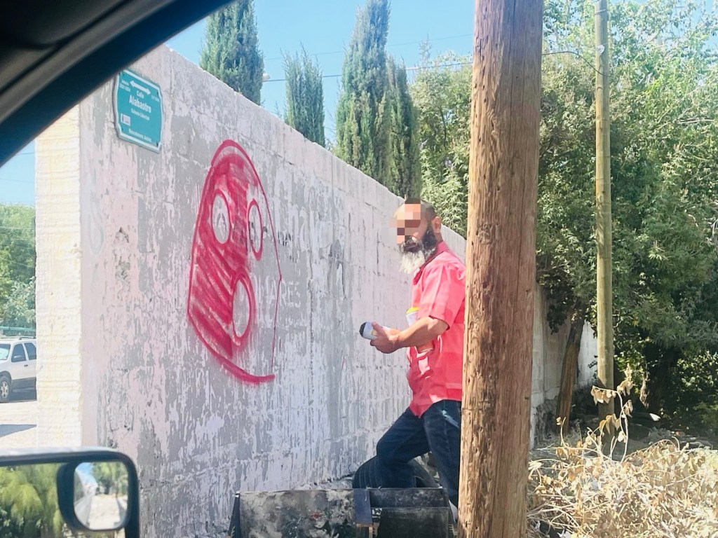 Agentes municipales del Distrito Poniente detuvieron a un hombre tras ser sorprendido pintando grafiti rojo en una pared pública de la colonia El Vergel.