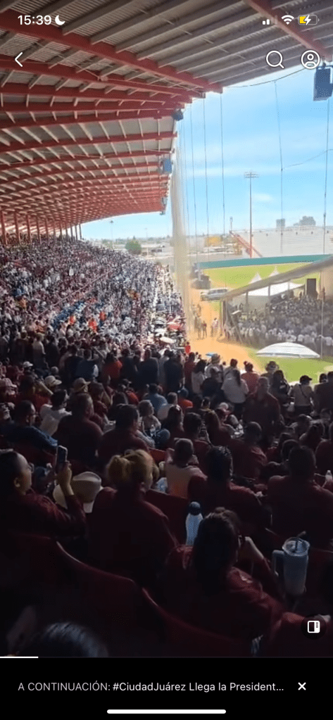 La presidenta Claudia Sheinbaum Pardo visitó hoy Ciudad Juárez, donde encabezó un acto masivo en el Estadio Juárez Vive para presentar resultados de su primer año de gobierno.