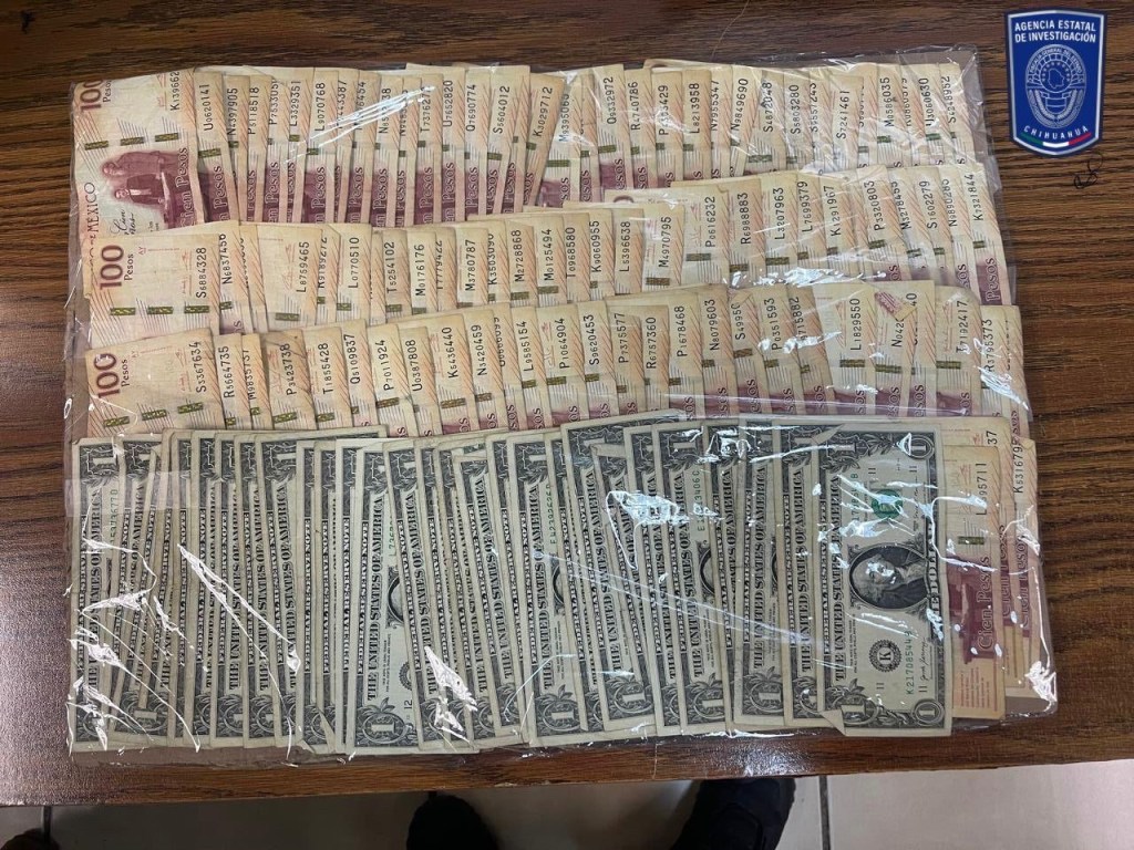 Durante la intervención se aseguraron 12 envoltorios con cocaína en piedra, 15 con cocaína en polvo, una porción de marihuana, dos molinos y 99 mil 350 pesos junto con 38 dólares.