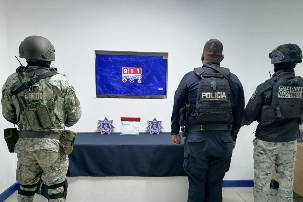 Elementos de las Bases de Operaciones Interinstitucionales aseguraron un vehículo Nissan Altima color arena, que tenía una bolsa con cristal en su interior.
