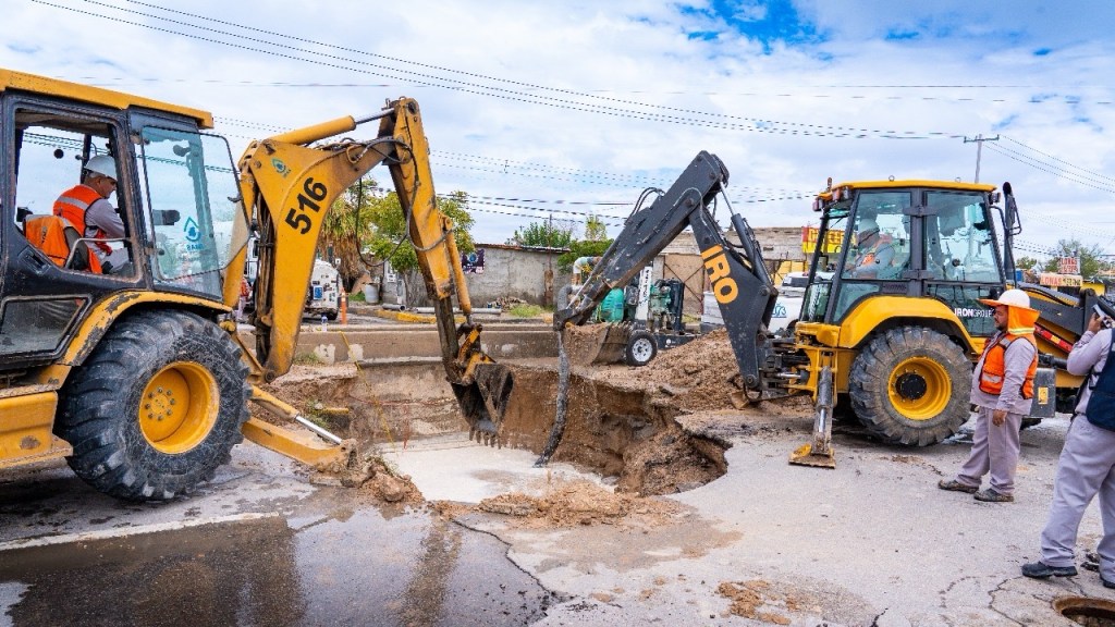 La Junta de Agua y Saneamiento de Juárez trabaja a marcha forzada para reparar siete hundimientos ocasionados por las lluvias, incluido el de la avenida Manuel J. Clouthier (Jilotepec) y Mitla.