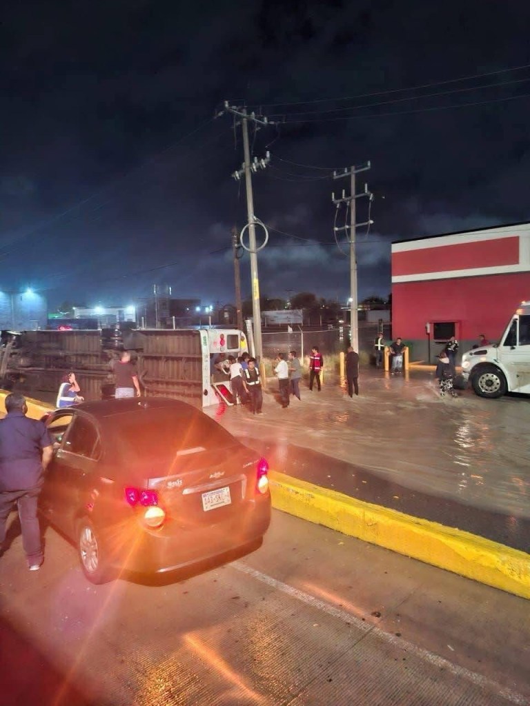 Conductores fueron sorprendidos durante la noche cuando iban rumbo a sus hogares, al igual que el transporte de personal de maquiladoras al no poder transitar debido al fuerte acumulamiento de agua.