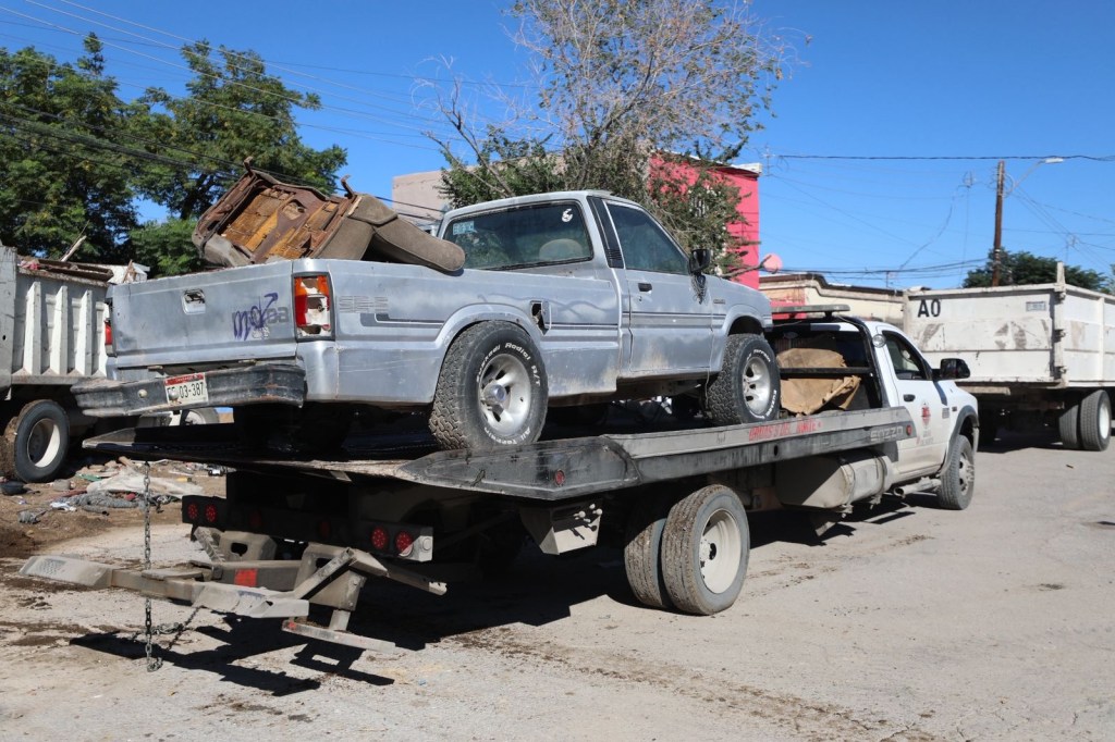 El Gobierno Municipal realizó un operativo en la colonia Melchor Ocampo para recuperar espacios públicos, mejorar seguridad y limpieza, atendiendo reportes de vecinos sobre basura y vehículos abandonados.