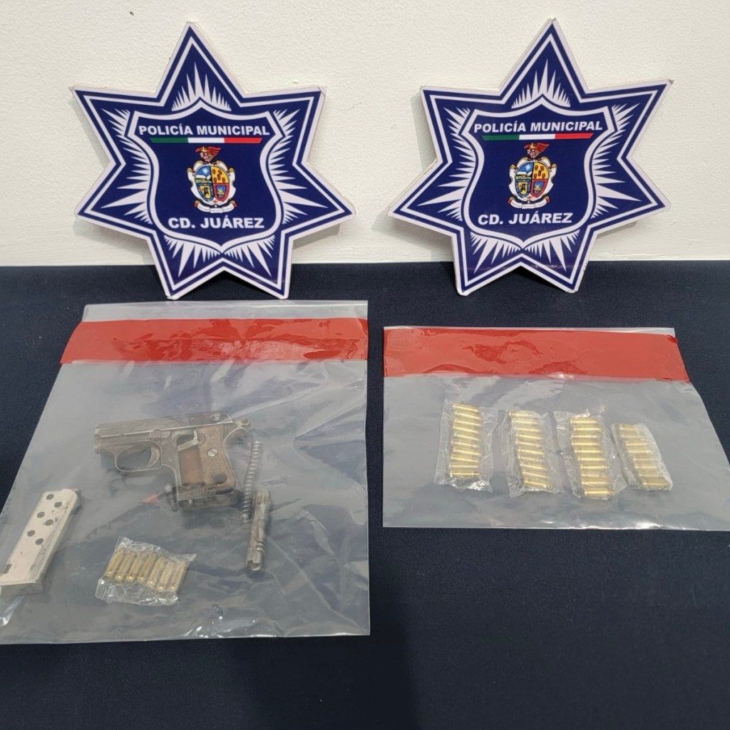 Durante la inspección, los policías le aseguraron una pistola calibre .25, un cargador vacío y 45 cartuchos útiles. El detenido fue consignado ante la autoridad correspondiente.