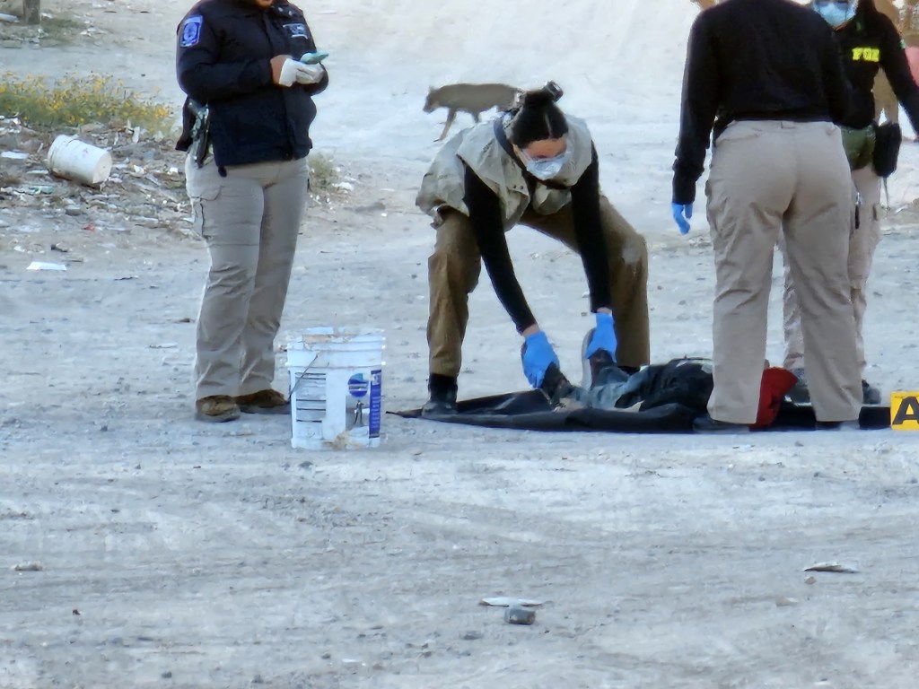 Un hombre fue asesinado a balazos esta tarde mientras cargaba un bote con tierra en las calles Emilia Téllez y Villas Señor, en la colonia Villa Esperanza.