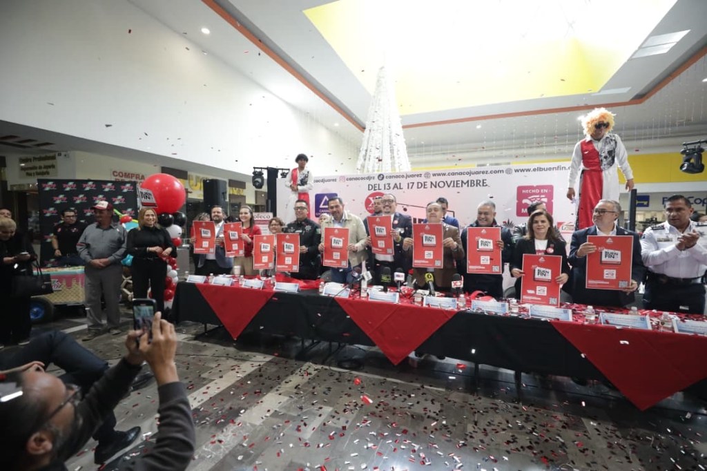 El alcalde Cruz Pérez Cuéllar inauguró el Buen Fin 2025 en Plaza Juárez Mall, destacando que esta iniciativa nació en la frontera hace 17 años.