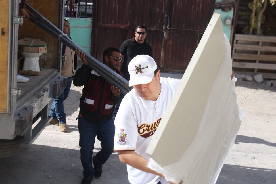 El titular Hugo Alberto Vallejo informó que junto a la presidenta del DIF, Rubí Enríquez, recorrieron 20 puntos distribuyendo muebles y material de construcción, con participación de 40 empleados municipales.
