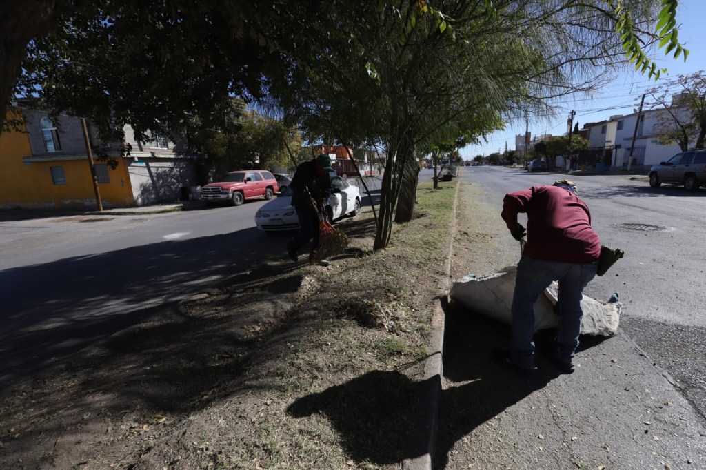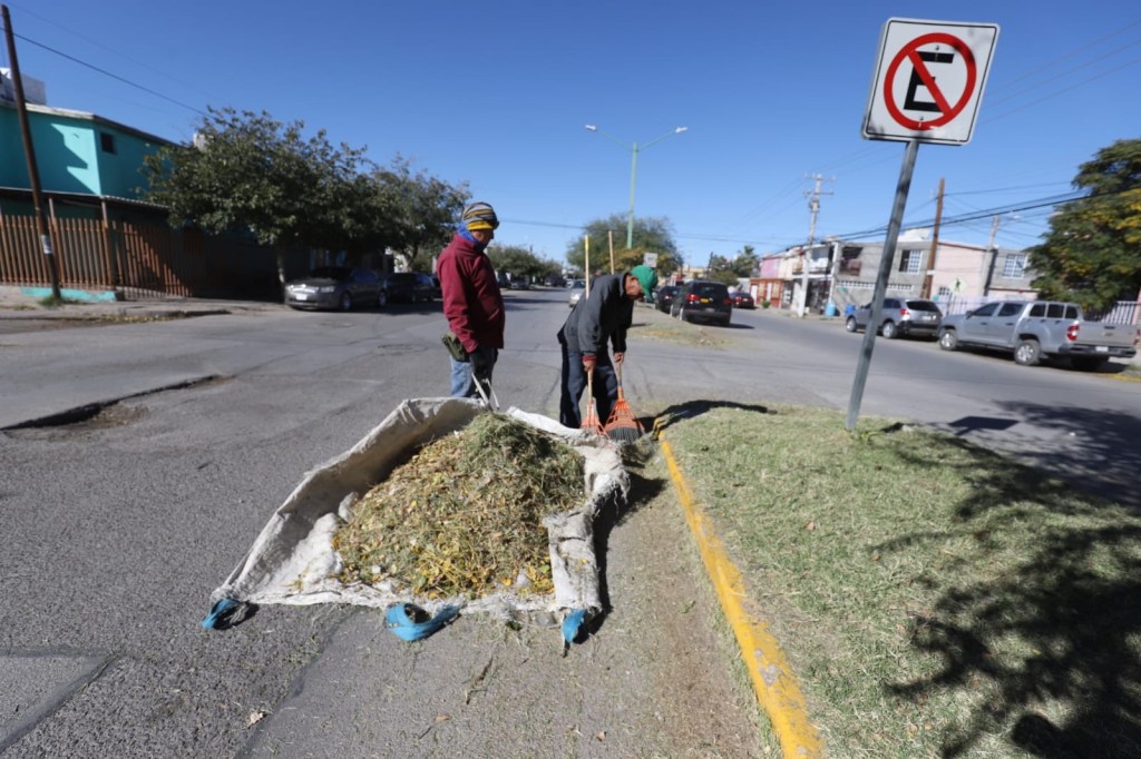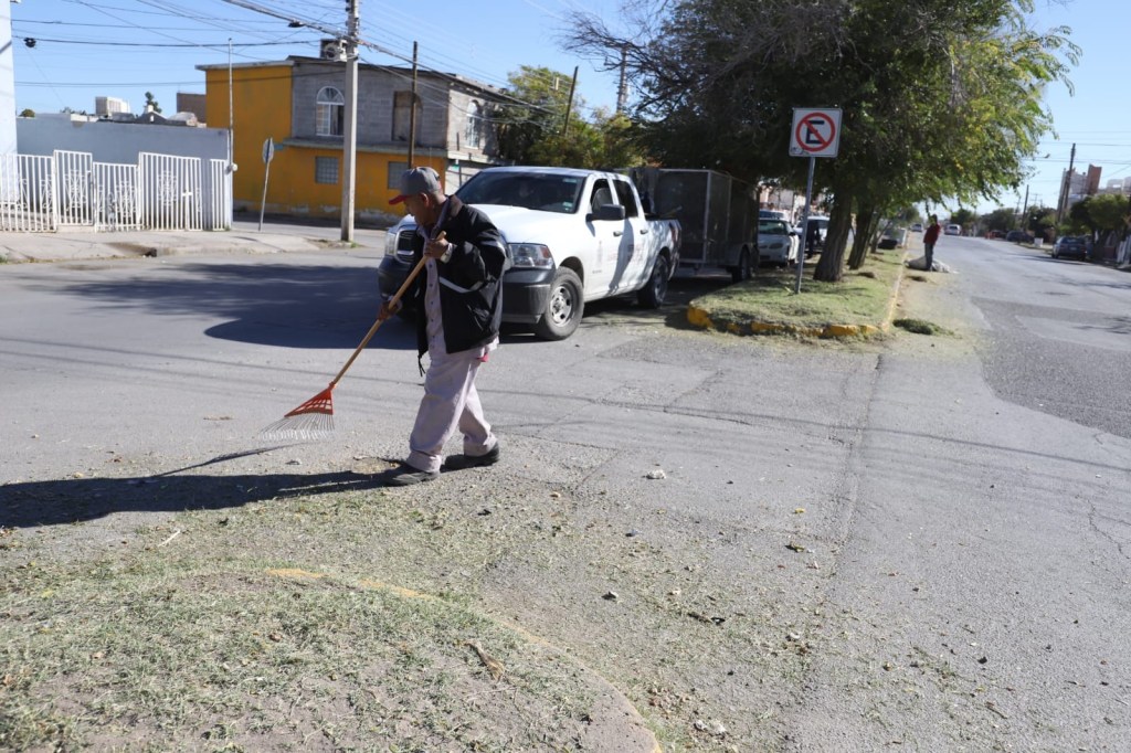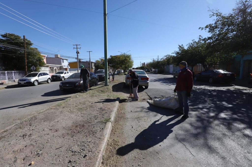 La Dirección General de Servicios Públicos realizó mantenimiento en el camellón de la avenida Valle de Juárez, donde cuadrillas limpiaron basura, cortaron hierba y atendieron espacios.