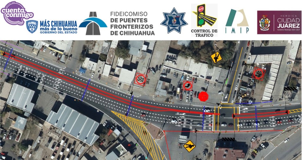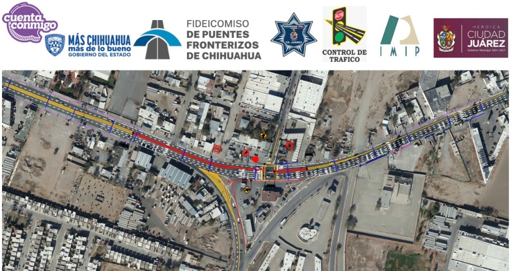 El objetivo es agilizar el cruce hacia Estados Unidos y reducir accidentes, construyendo un camellón que separe retornos y carriles hacia El Paso, además de ajustar el sentido de circulación en Ramón Rayón.