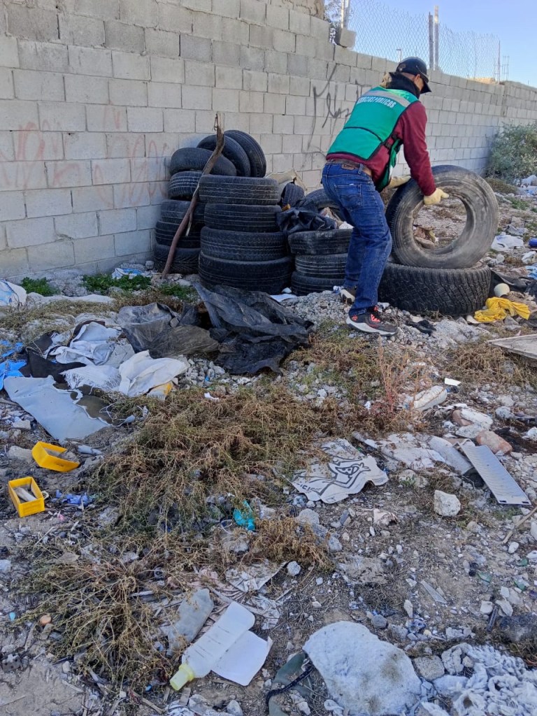 La Dirección de Limpia llevó a cabo trabajos de mantenimiento en áreas verdes del fraccionamiento Parajes de San José, donde además atendieron un lote baldío usado de forma indebida como tiradero.