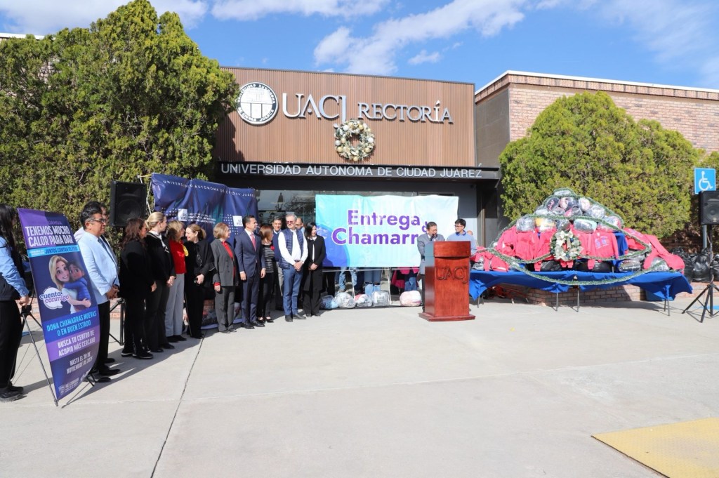 La Universidad Autónoma de Ciudad Juárez entregó más de 2 mil 300 chamarras al DIF Estatal como parte de la campaña “Juntos sin Frío”, en un evento realizado en la Rectoría de la Universidad. La colecta reunió prendas durante octubre y noviembre gracias a estudiantes, docentes y personal administrativo.