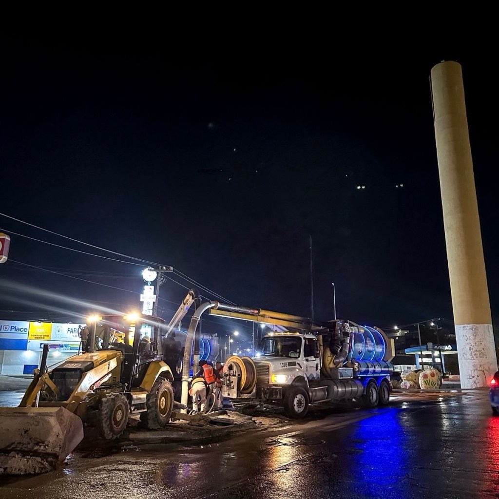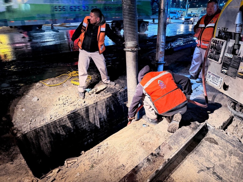 La Junta de Agua y Saneamiento de Juárez realizó un operativo nocturno de limpieza en las cajas desarenadoras del colector Norzagaray, retirando tierra y basura acumulada para mejorar el drenaje en colonias del norponiente de la ciudad.