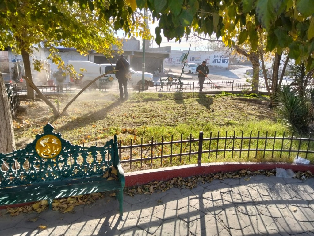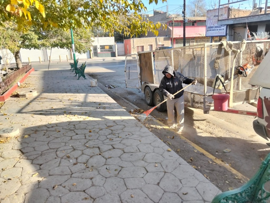 La Dirección de Parques y Jardines llevó a cabo labores de mantenimiento en la Plaza Zaragoza, con el fin de mejorar su imagen y ofrecer a las familias un espacio limpio y agradable.