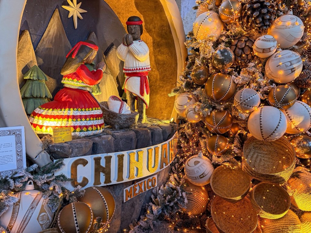 La gobernadora de Chihuahua Maru Campos Galván, inauguró en la Plaza de San Pedro en la ciudad de El Varicano, la exposición internacional de cien pesebres, presentando un nacimiento rarámuri elaborado por artesanos chihuahuenses.