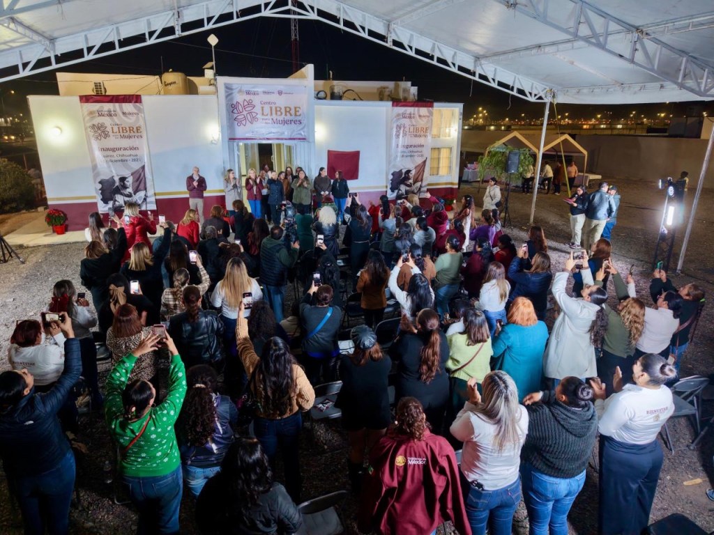 El presidente municipal de Ciudad Juárez, Cruz Pérez Cuéllar, acudió a la inauguración del Centro Libre para las Mujeres junto a la presidenta Claudia Sheinbaum Pardo, en la avenida Manuel Talamás Camandari, al suroriente de la ciudad.